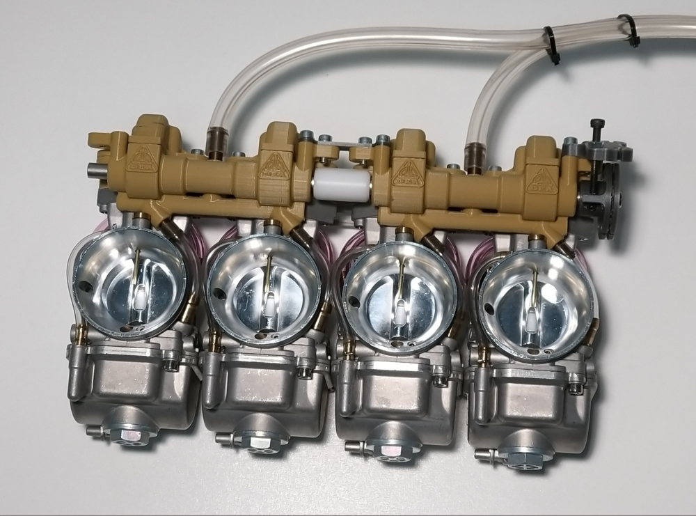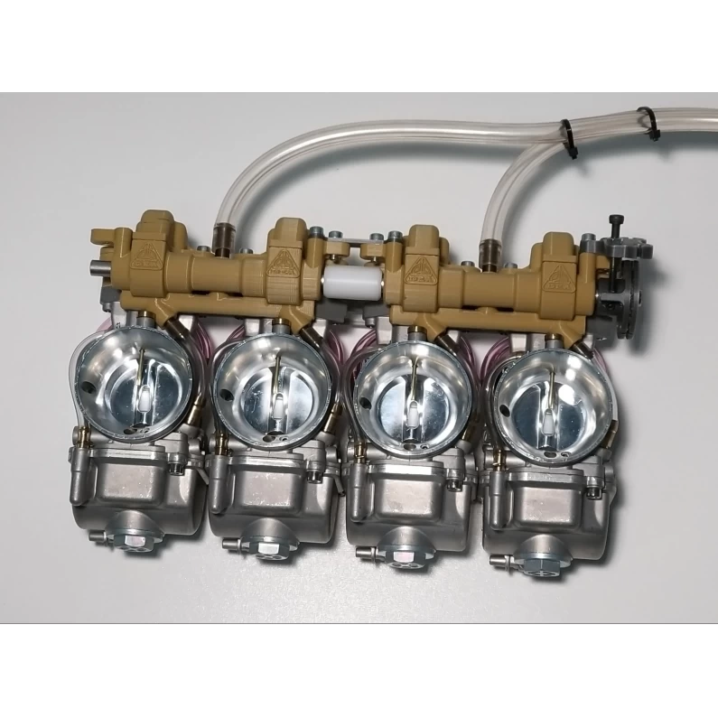 4 carburettors diameter 34 with DEA technology, mechanical power jet, machined by union